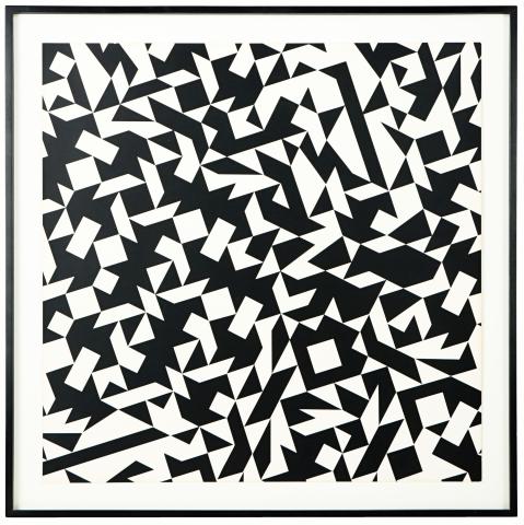 Černo-bílá struktura, rok 1971, serigrafie na papíře, signováno a datováno Sýkora 71, číslo 9/100, rozměry serigrafie 60 x 60 cm, celkové rozměry s rámem 70 x 70 cm.