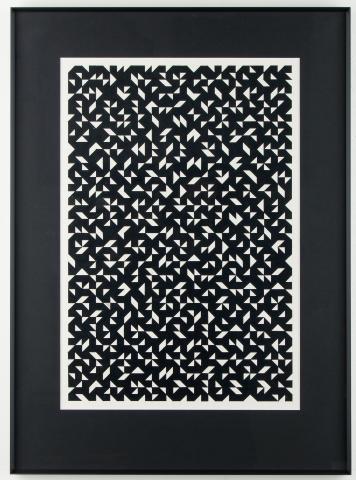 Černo-bílá struktura, 60. léta 20. století, kresba - tuš na papíře, značeno razítkem R. Kratina, 50 x 34 cm, celkové rozměry s rámem 65,5 x 48,5 cm.