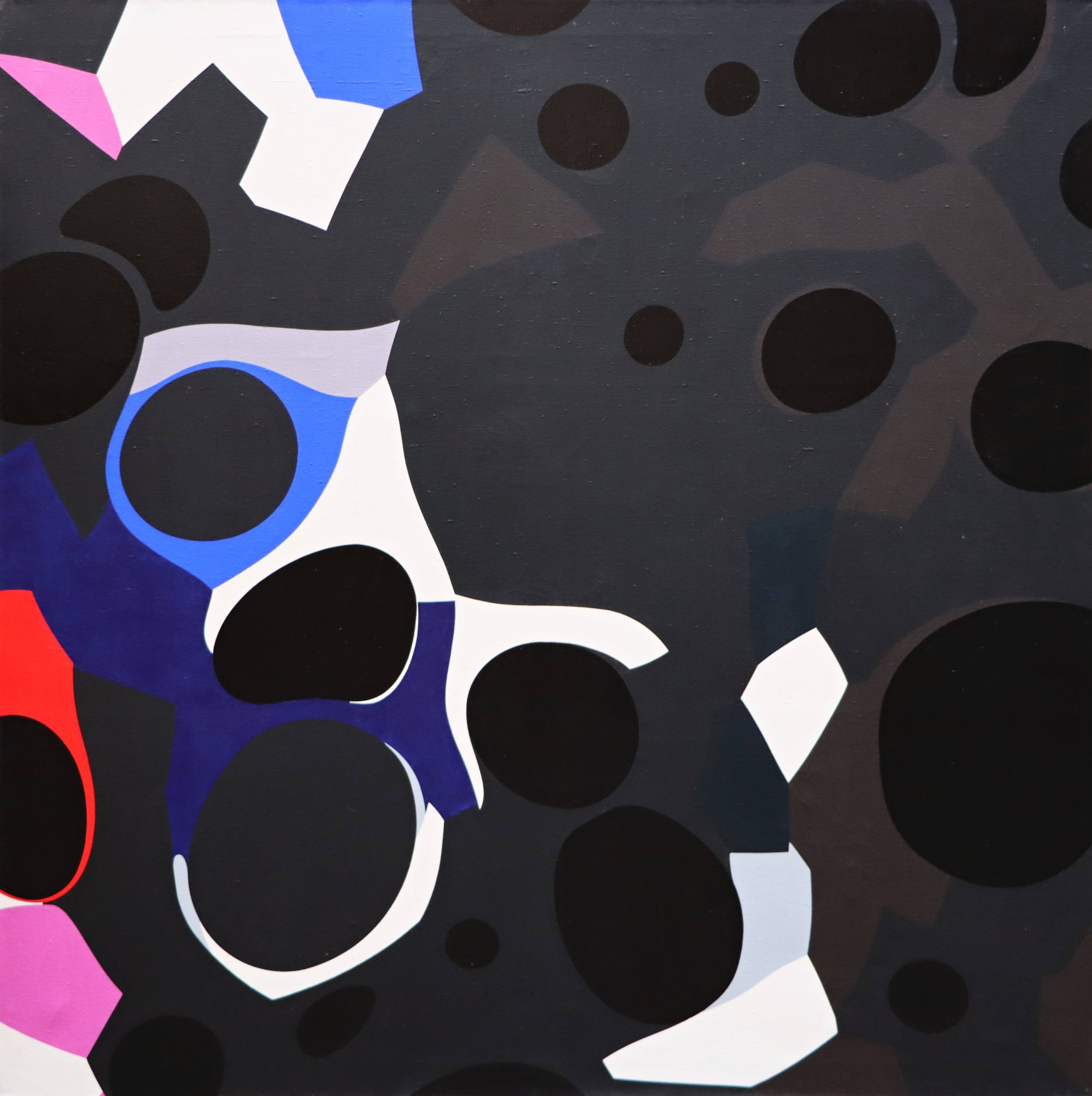 Černá variace, 60. léta 20. století, koláž na papíře, značeno razítkem R. Kratina, rozměry 62,5 x 62,5 cm, celkové rozměry s rámem 79,5 x 79,5 cm. Vystaveno: OKOUZLENI GEOMETRIÍ, Výstavní síň