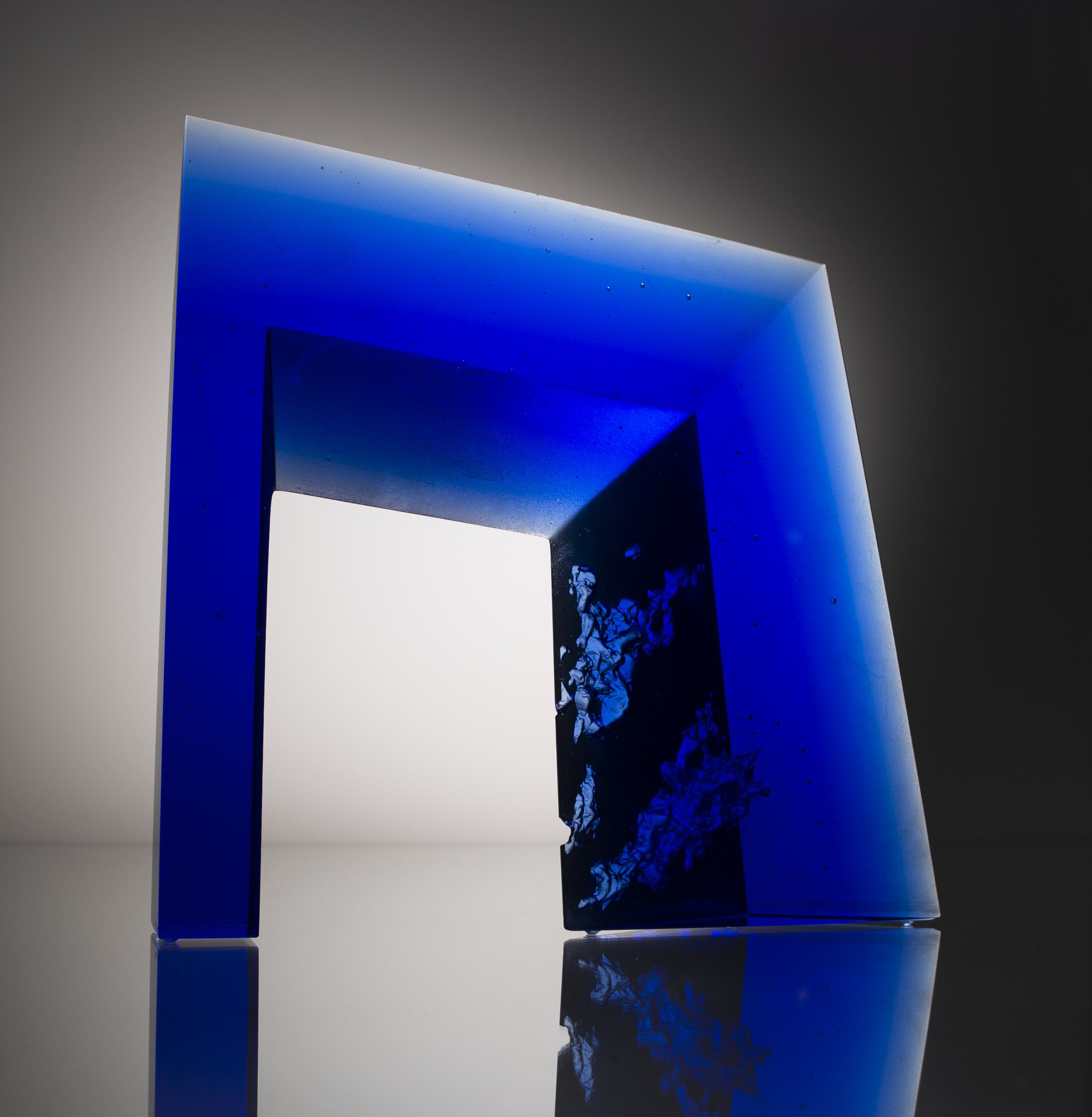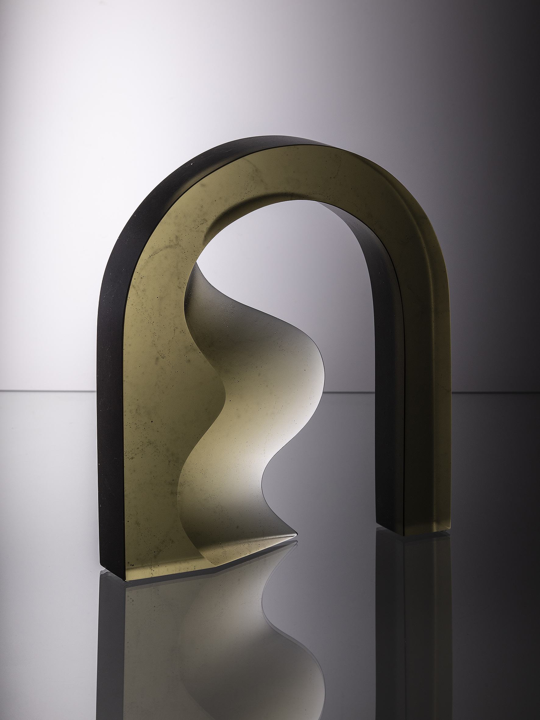 Porta, rok 2025, tavený křišťál, broušený a leštěný, signováno Z. Kunst, celkové rozměry 34 x 36 x 6 cm. Slova autora: Objekt představuje bránu do neznámého, tajemného prostoru. Za ní můžeme