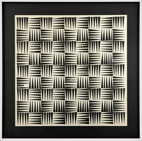 Černo-bílá struktura, rok 1971, serigrafie na papíře, signováno a datováno Sýkora 71, číslo 9/100, rozměry serigrafie 60 x 60 cm, celkové rozměry s rámem 70 x 70 cm.
